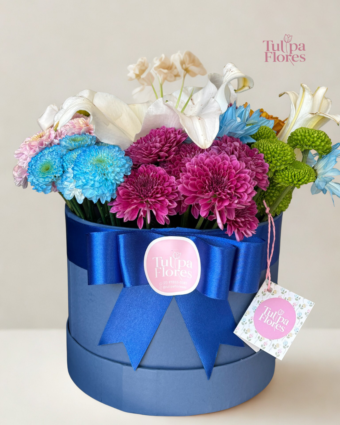 Um mix delicado de flores do campo com tons de azul, criado pra quem quer presentear com frescor e sofisticação. Um gesto marcante, leve e cheio de encanto.